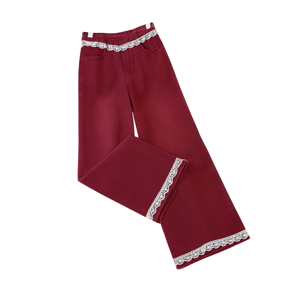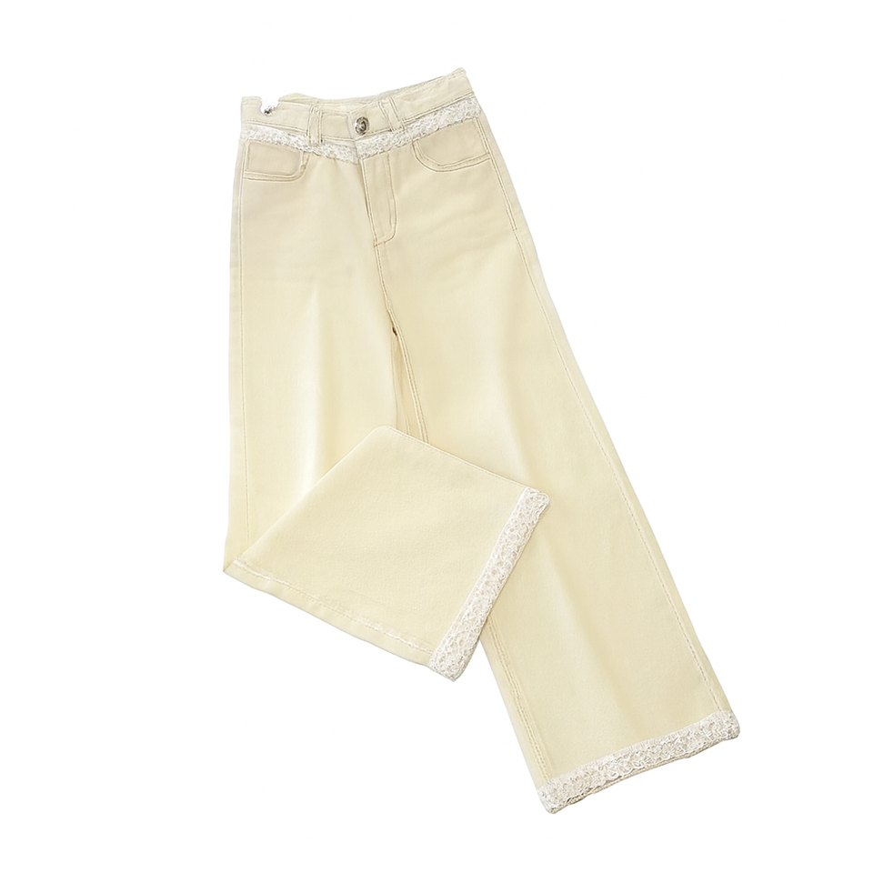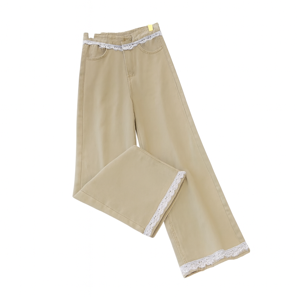 High Waist Wide Leg Lace Trim Denim Jeans for Women – Vintage Streetwear Korean Style Casual Loose Fit Pants – Trendy Lace Hem Jeans 2025