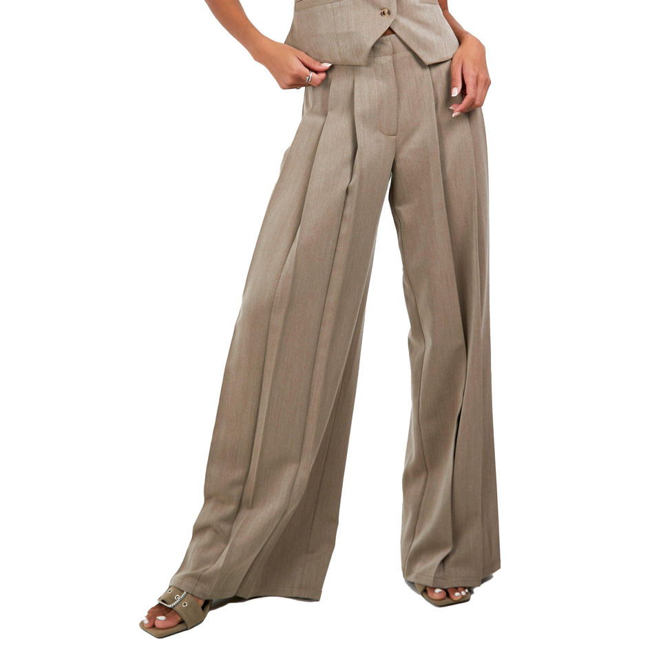 High Waist Wide Leg Zipper Pockets Striped Women Pants Casual Streetwear Formal Stylish Loose Straight Breathable Trousers