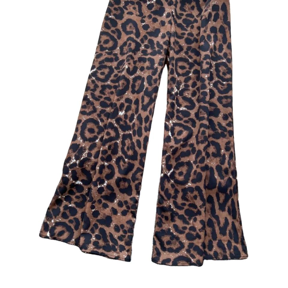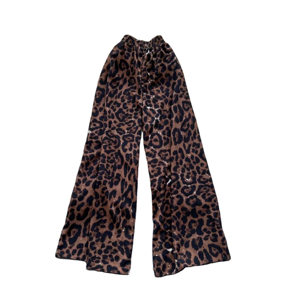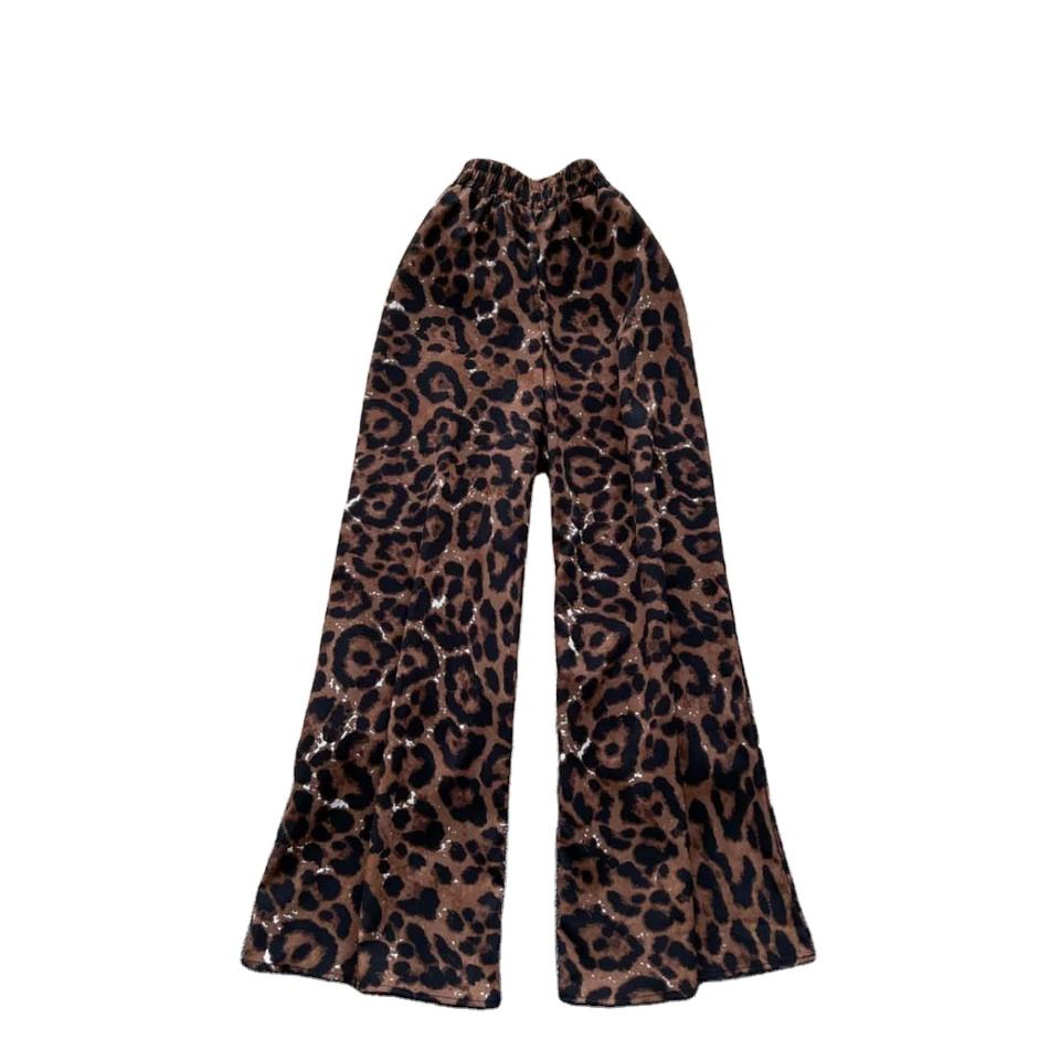 High Waist Women Leopard Print Wide Leg Pants Elastic Waist Loose Fit Summer Trousers