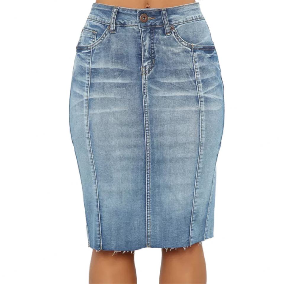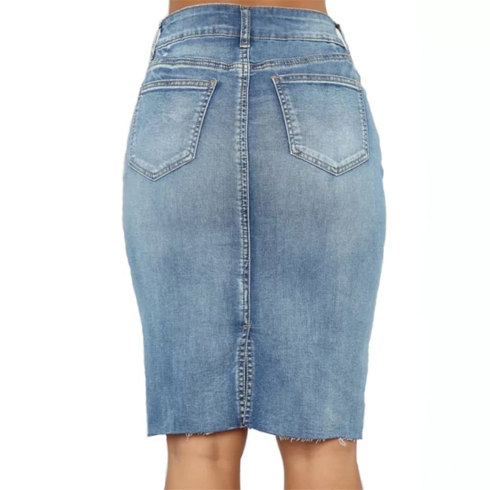 High Waist Women Sexy Casual Raw Edge Short Denim Skirts Wholesale Pencil Jean Skirt
