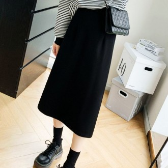 High Waist Women's Black Suit Skirt Medium Long Lavender Sleeve Comfortable for Autumn Winter