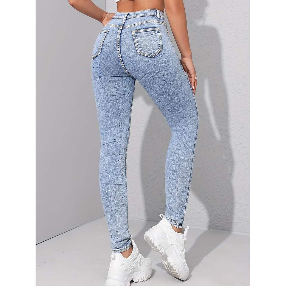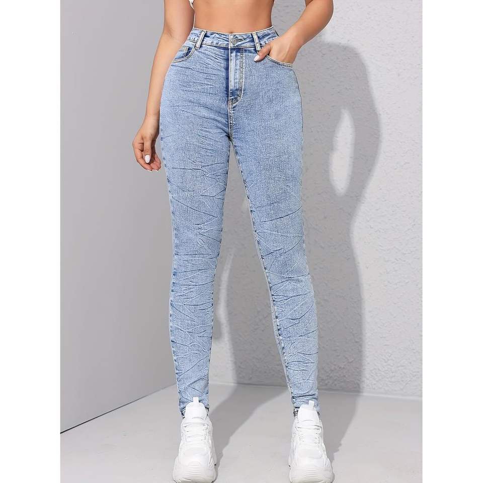 High-Waisted Women's Skinny Jeans Stretchy Slim Fit Comfy Classic Denim Leggings Pockets Vintage Wash High Bamboo Raw Materials