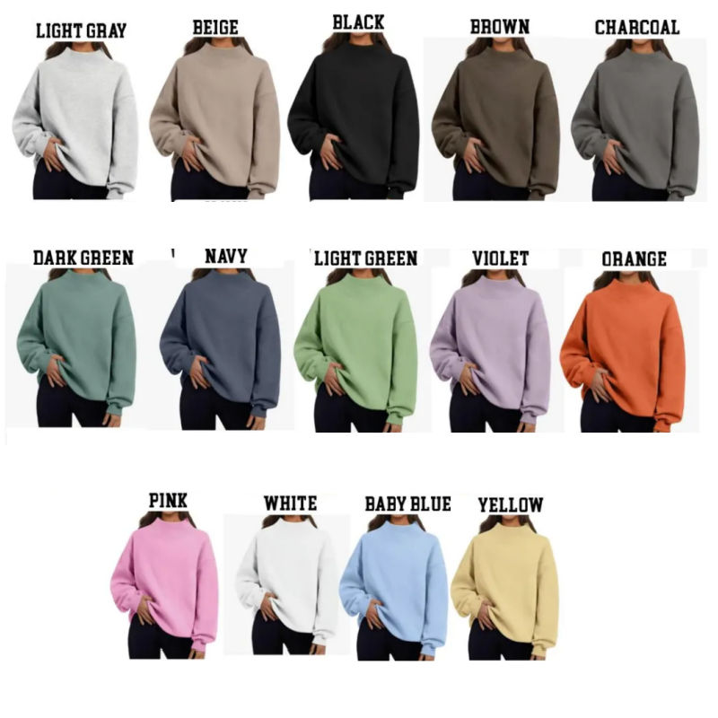 High Women's 100% Cotton Regular Mockneck Top Customized Printing Front Eco-Friendly Fleece Lightweight Breathable for Autumn