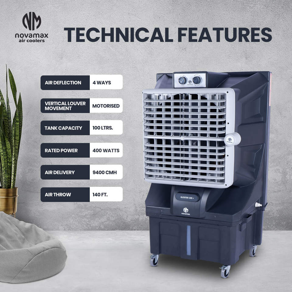 High capacity air cooler Gloster 100 LTR Air Cooler with Auto Swing Louvers Durable Aluminium Construction Available