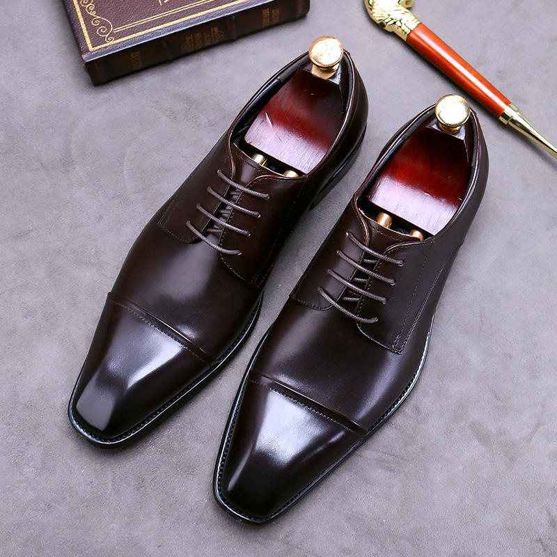 High-end British-style Business Formal Lace-up Genuine Leather Oxford Shoes Men Pointed-toe Handcrafted Groom Evergreen