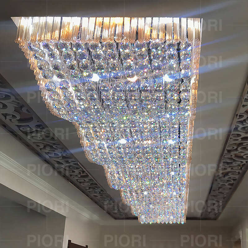 High-end Extra Long Crystal Ceiling LIghts For Banquet Hall Wedding Event Luxury Low Ceiling Gold Crystal Flush Mount Chandelier