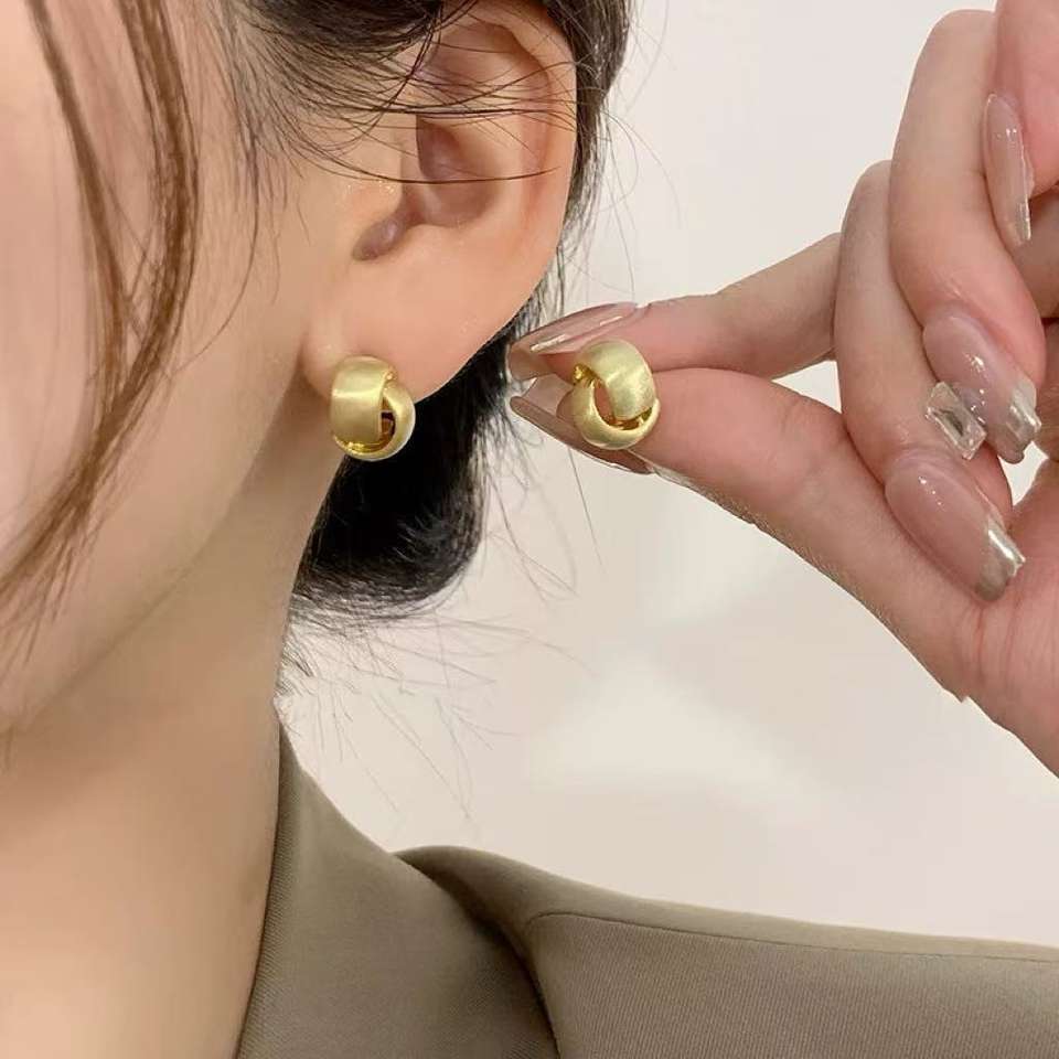 High-end Fashion Versatile Brushed Niche Design Simple Surround Earrings Jewelry