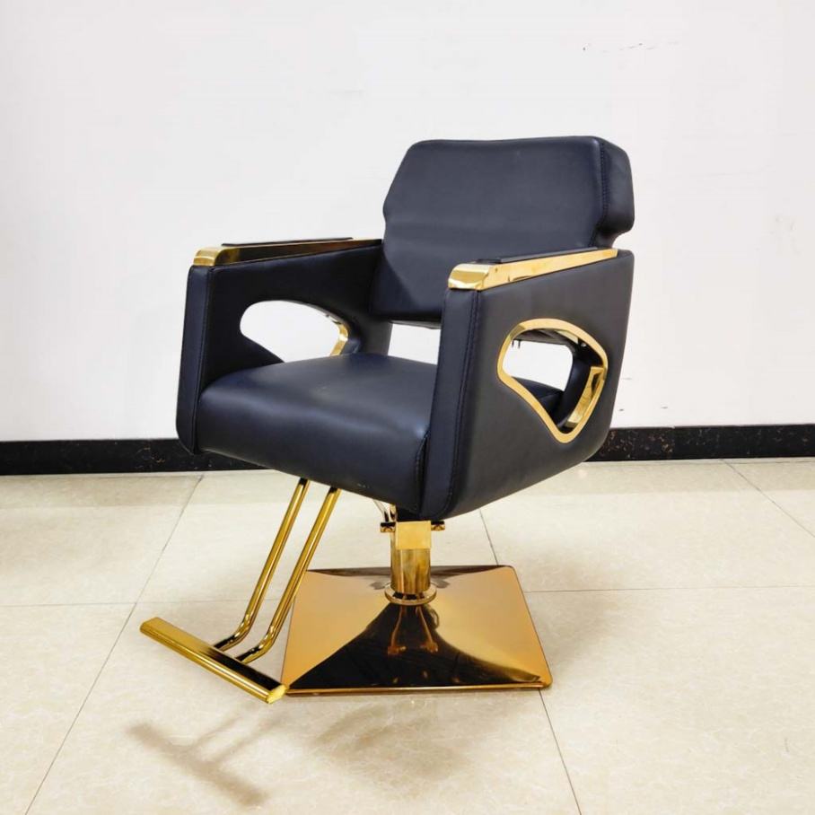 High-end Hair Salon Furniture Armchair Can Rotate and Lift Stainless Steel Black Metal Barber Chair Foldable Living Room Use
