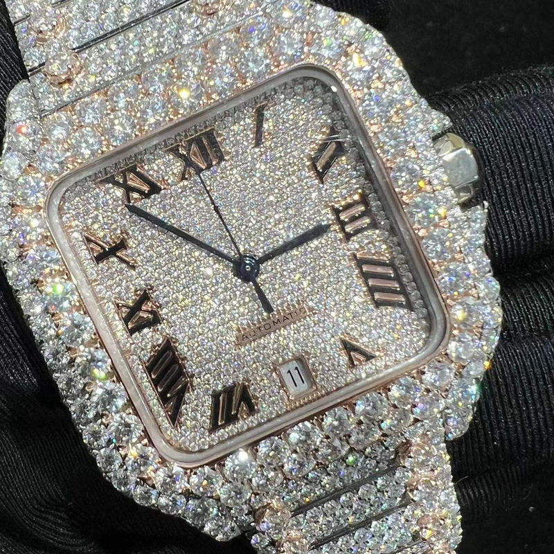 High-end Handcrafted VVS Moissanite Watch Hip-Hop Glitter Style Full Diamond Setting Automatic Mechanical Watch High Quality