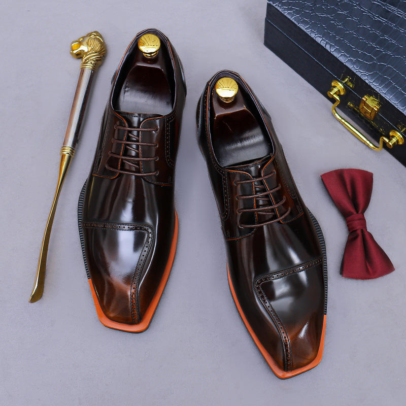 High-end Men's Business Formal Oxfords Shoes Genuine Leather Closed Toe Evergreen Lacquered British Shiny Anti-Slip