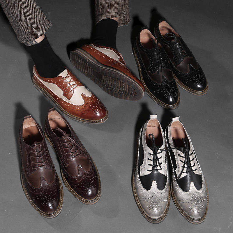 High-end custom men's derby shoes with smooth leather upper, casual and breathable soft sole, and brogue style.