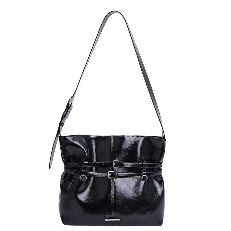 High-end, original women's luxury handbag, vintage motorcycle card holder with crescent rivet, women's style shoulder bag.