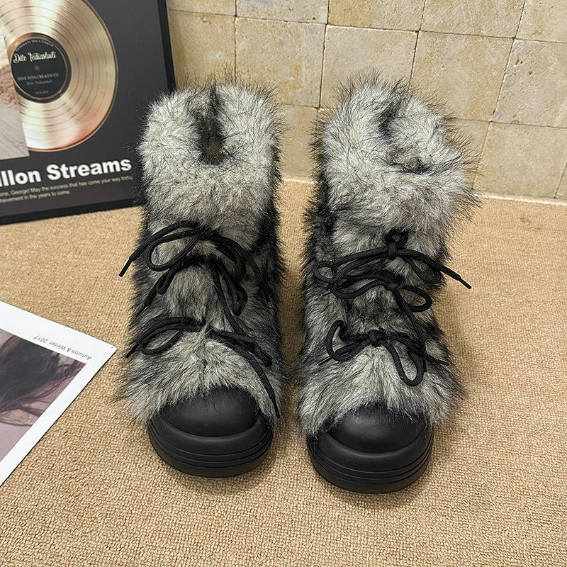 Mules, Printed, Fur, outdoor slippers, WARM SLIPPERS, Lace-up, High top, PlatformStyle