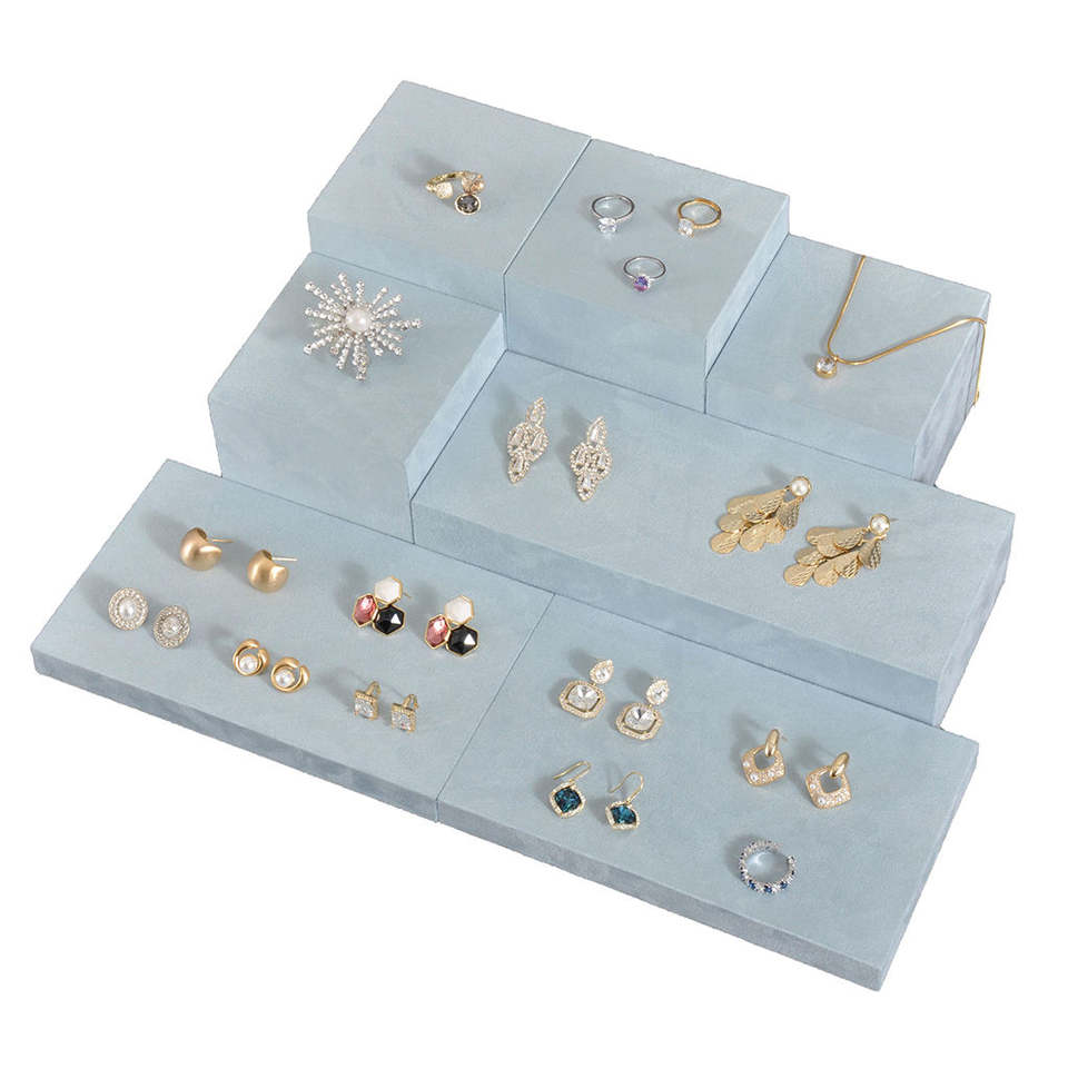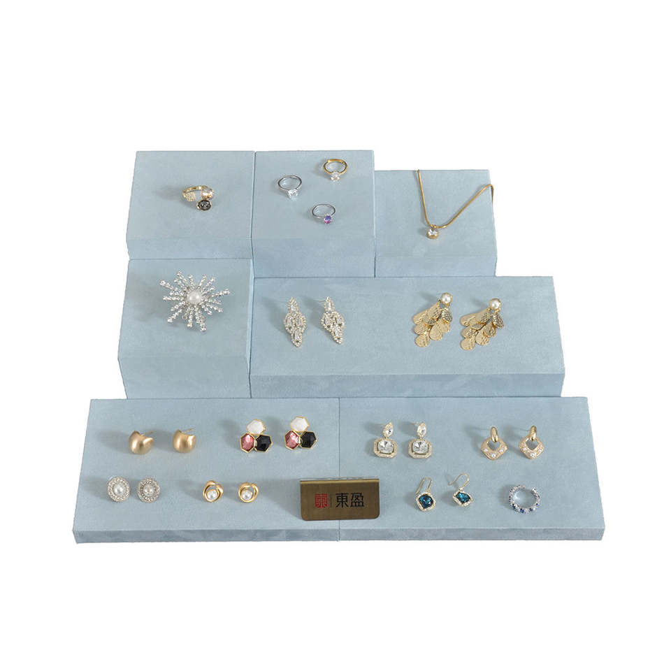 High-grade Multiple Size Display Blocks Velvet Jewelry Tray with Logo Ring Pendant and Earring Salver