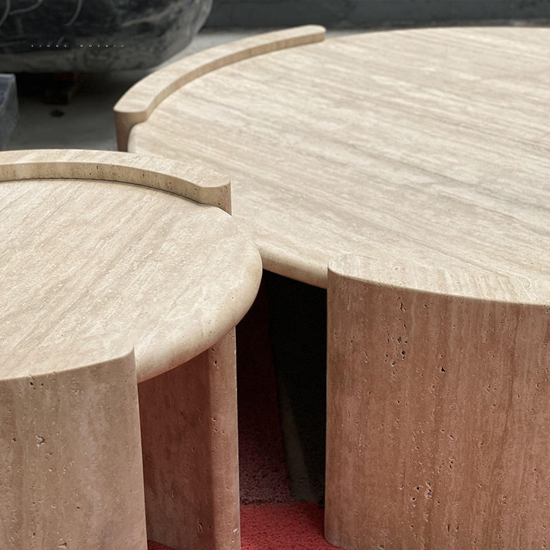 High-grade Travertine Furniture Round Beige Travertine Coffee Table Manufacturer Customized Production