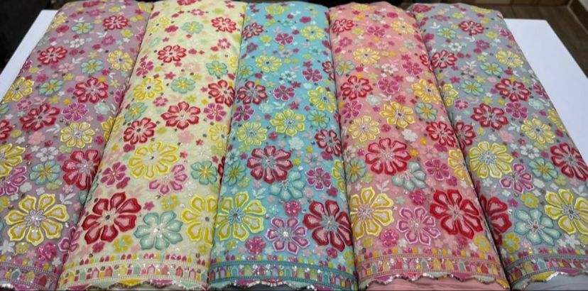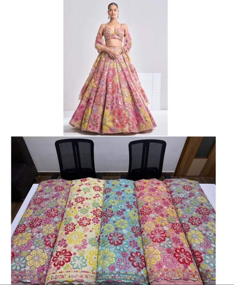 High on Demand 6 Sequence Border Work Butterfly Net Fabric for Making Women Lehenga Choli at Export Price