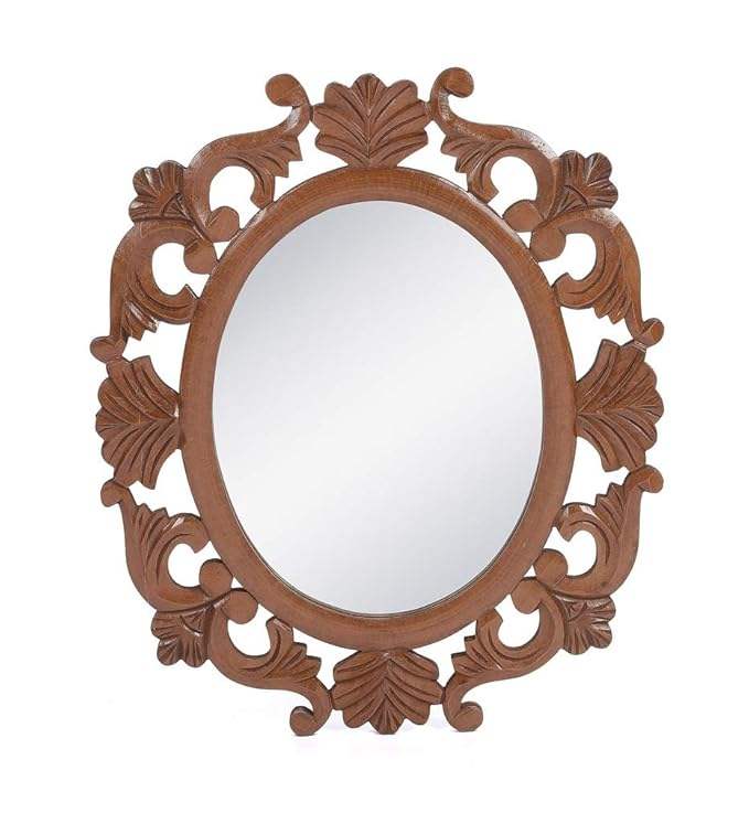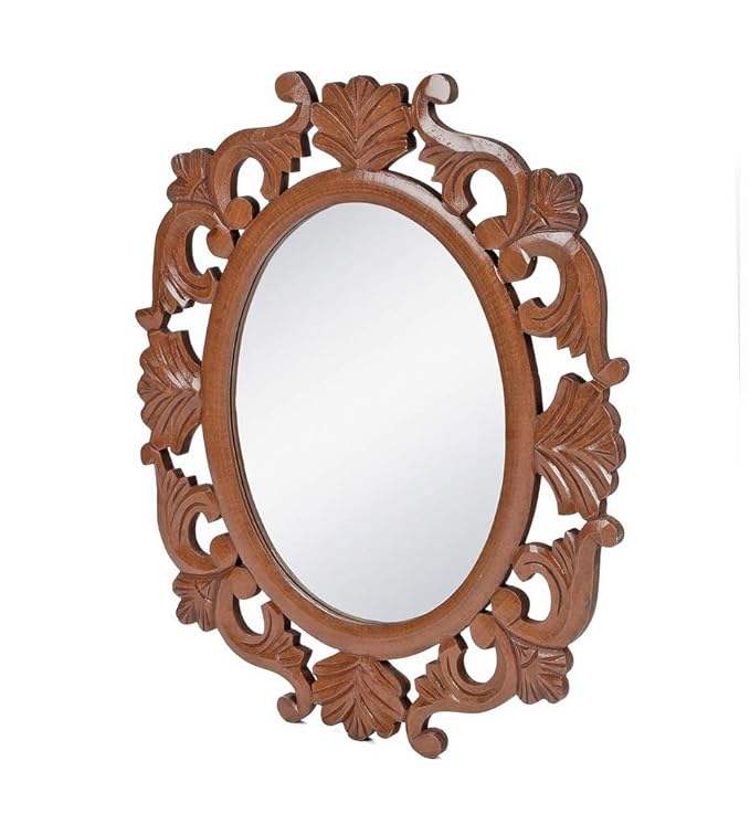 High on Demand Alfa Design Wooden Wall Mirror with Oval Shape for Gifting use Available at Best Price from Indian Supplier