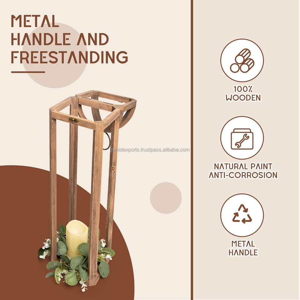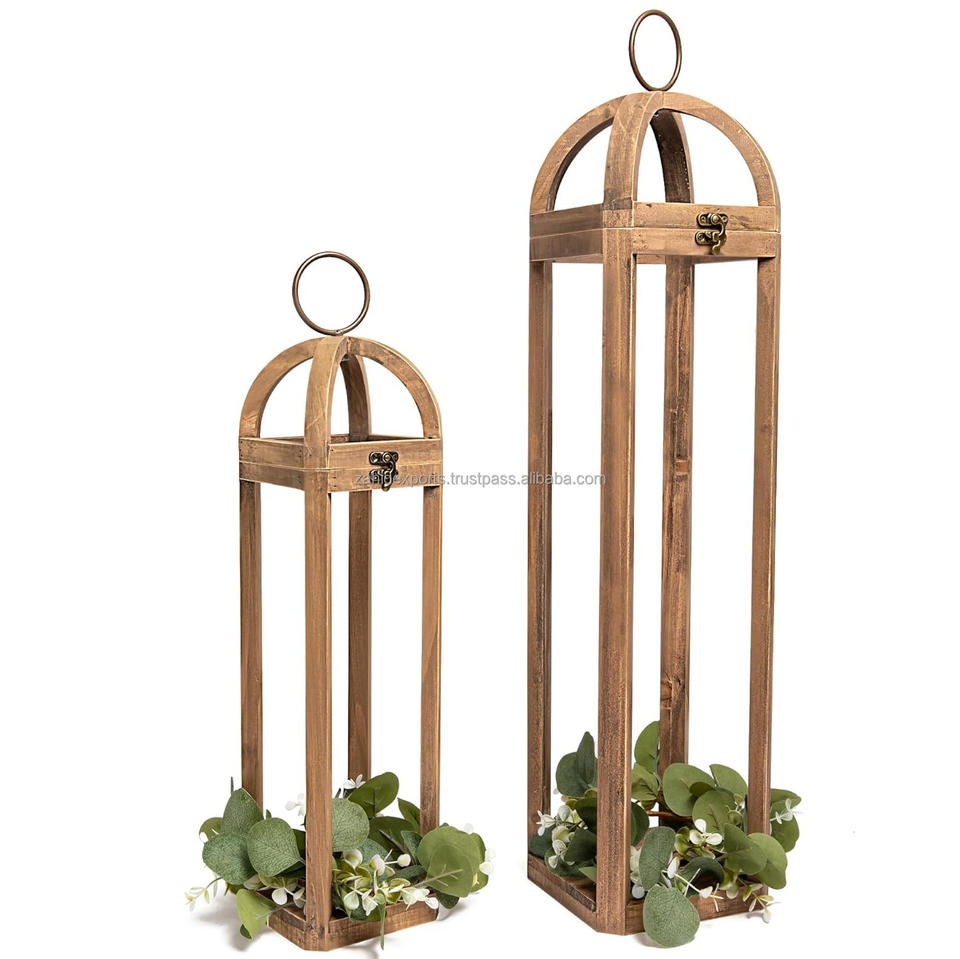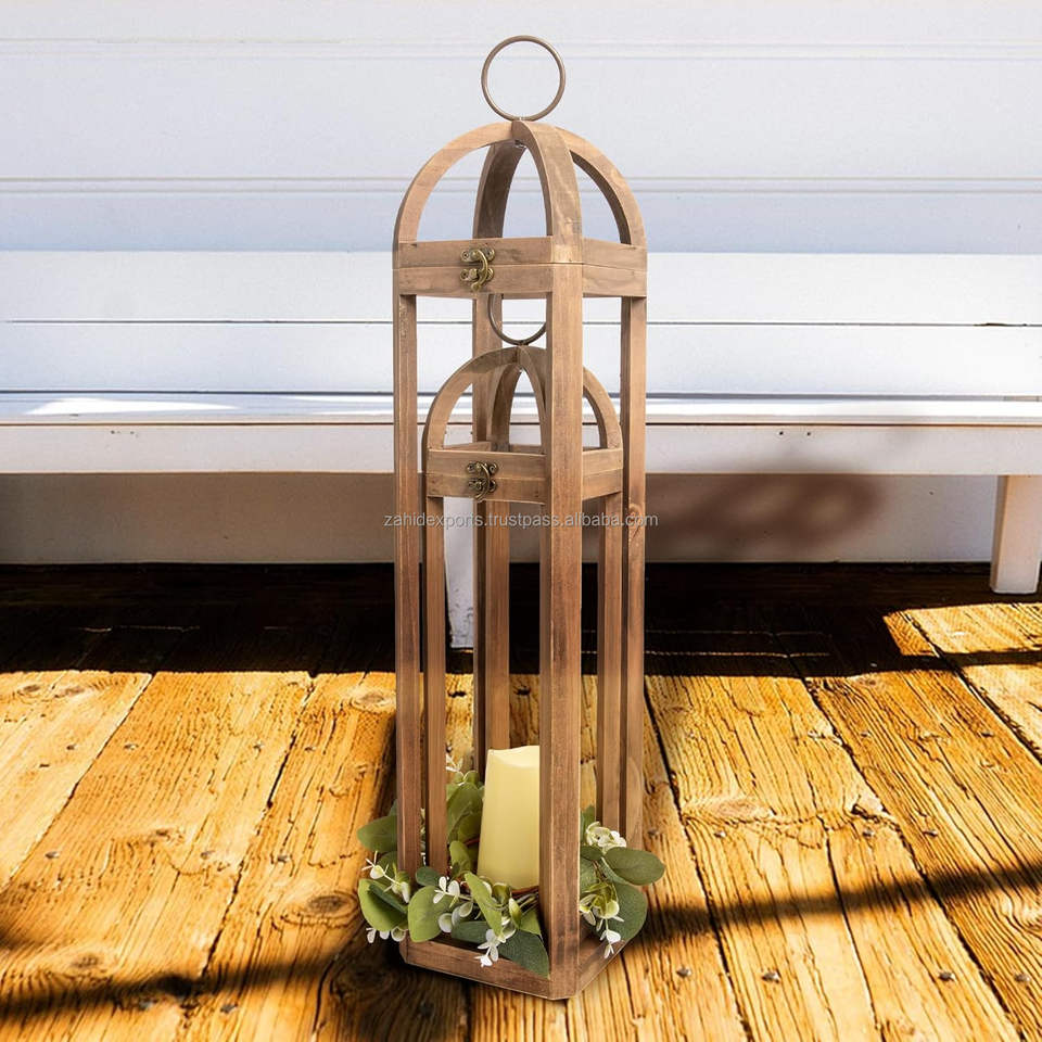 High on Demand Decor Large Rustic Farmhouse Lantern Decor Set of 2 Wooden Lantern for Home and Hotel Decoration