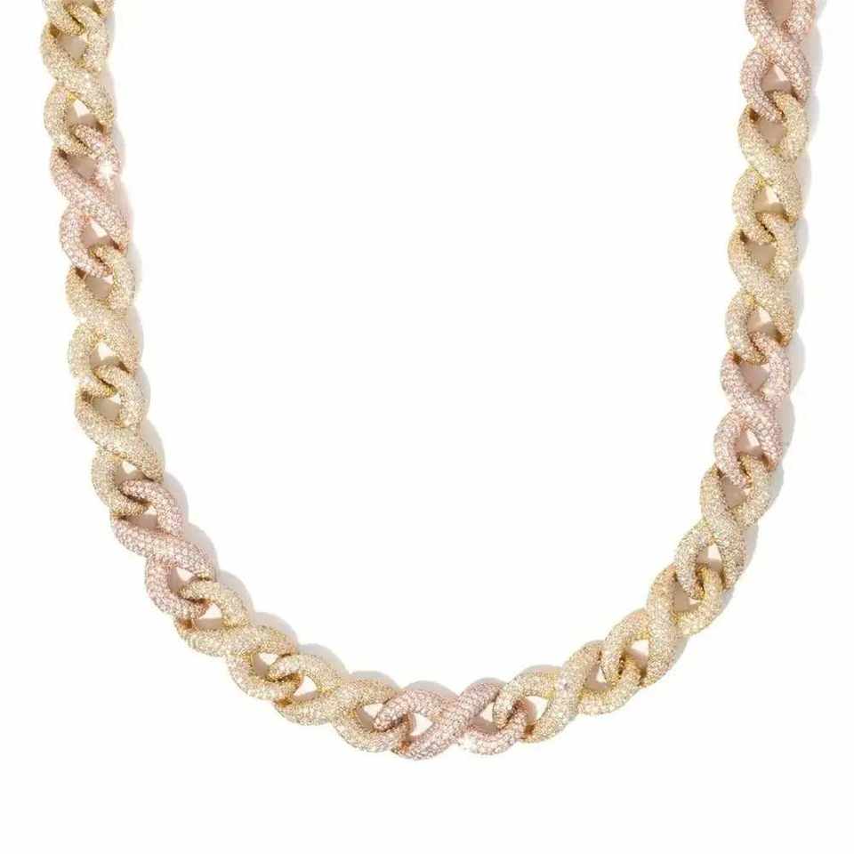 High on Demand Fine Chains Necklaces Lab Grown Two Tone Color Hiphop Style Yellow Gold Cuban Chain Gift for Men