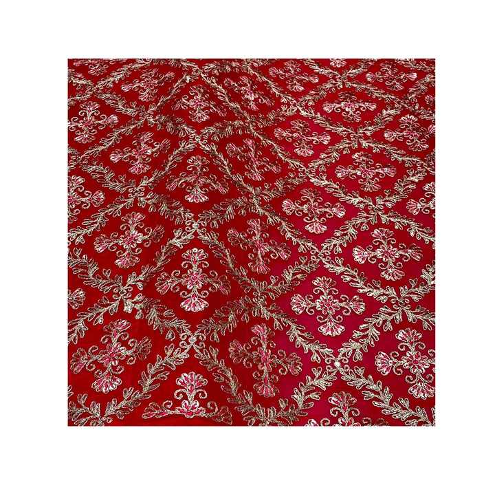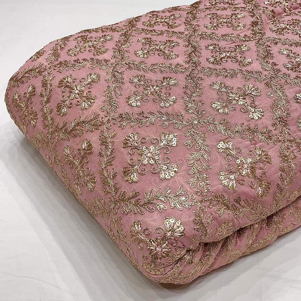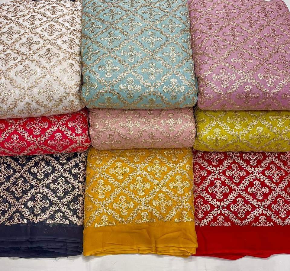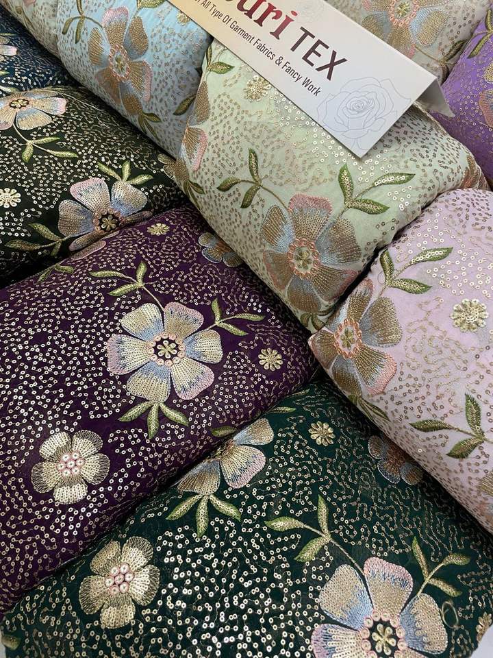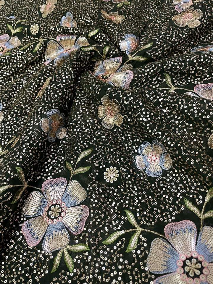 High on Demand Viscose Thread with Sequence Jaal Work Faux Georgette Fabric for Garment Dress at Export Price