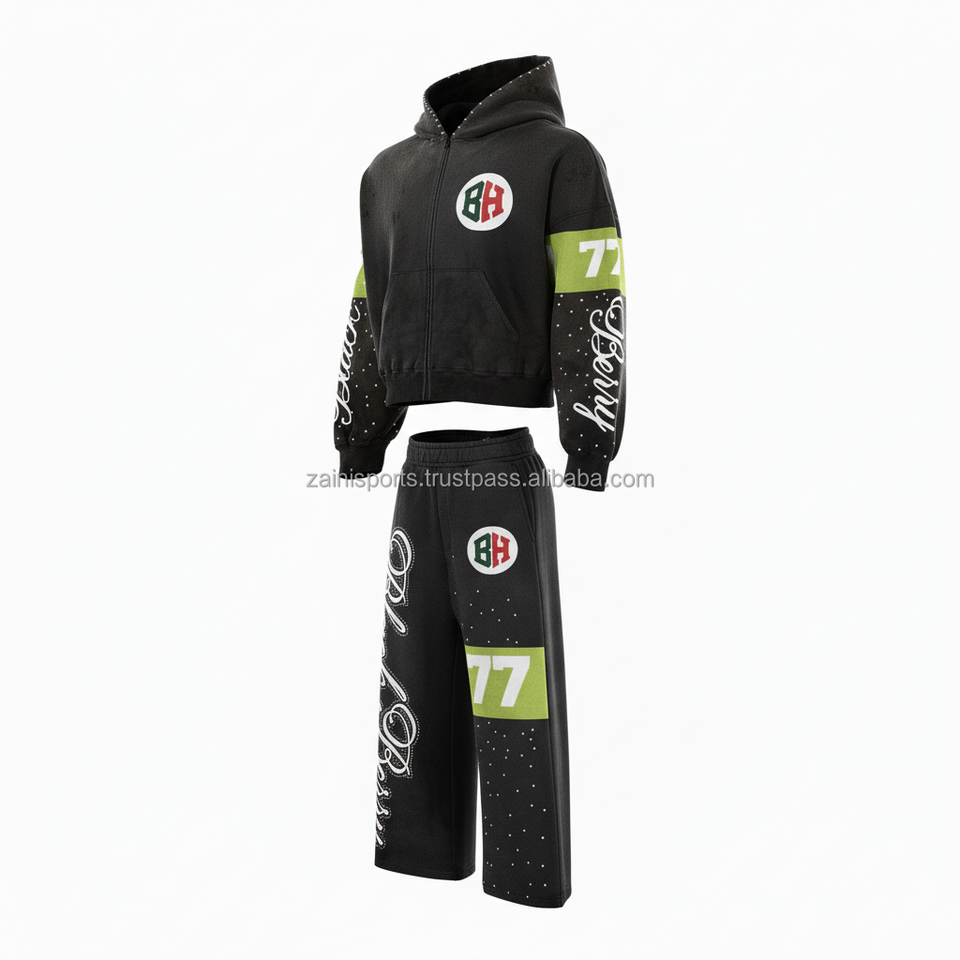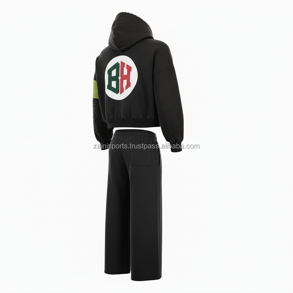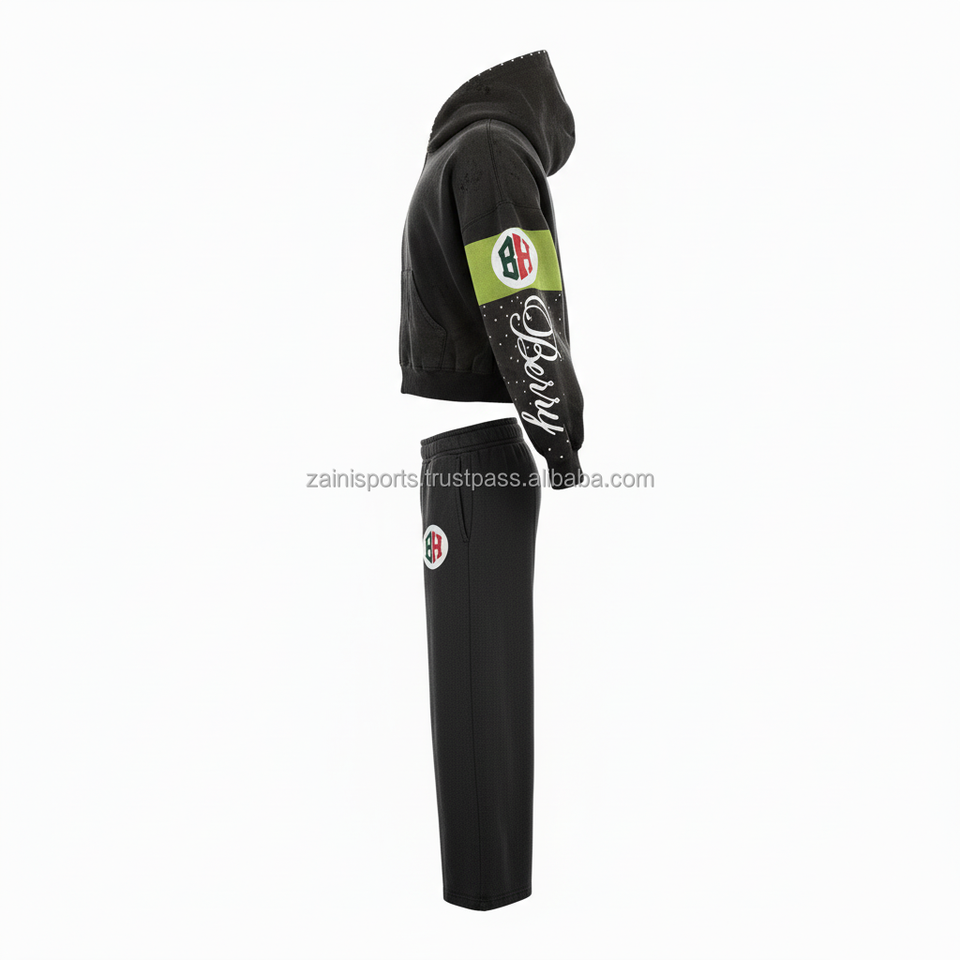 High quality 370 GSM warm brushed fleece cotton polyester black tracksuit hoodie and jogger set custom logo Tracksuit