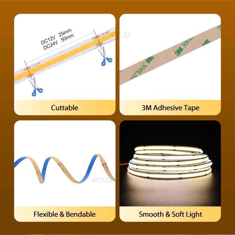 12V 24V 100ft Warm White 6500k Light Flexible COB LED Strip Light