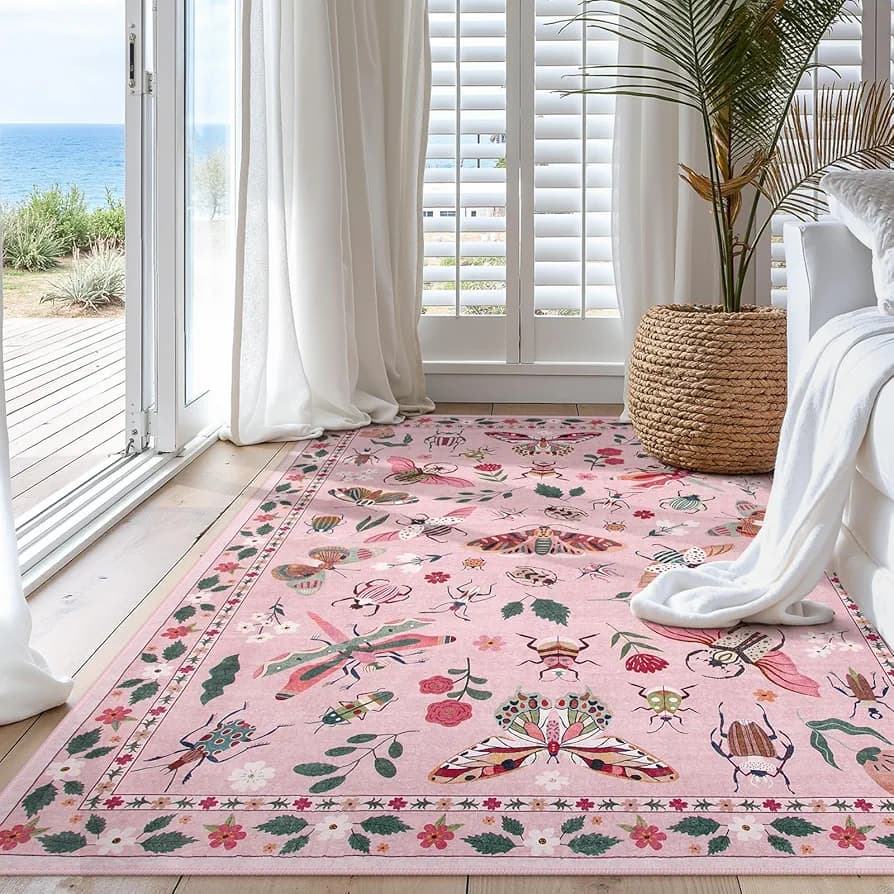 High quality Carpet Rugs for Living Room Floor Area Non Slip Soft Ultra-Thin Modern Pink for Bedroom Resistant Accent Hand made