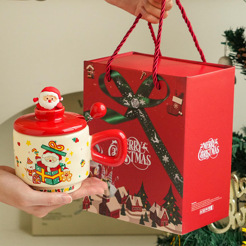 High-quality Christmas Ceramic Cups with LIDS, Home Cartoon Cute Breakfast Couple Water Cups, Creative Souvenir Mugs