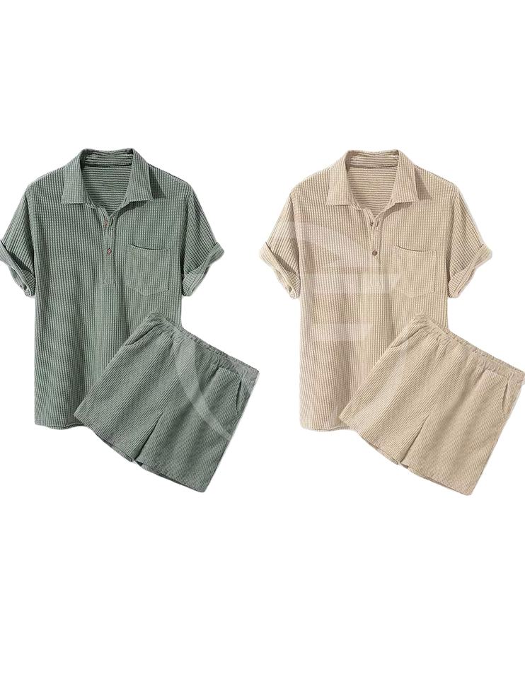High Quality Custom Screen Print Men's Summer Short Set 2-Piece Cotton/Polyester Sweatsuit with Plain T-Shirt