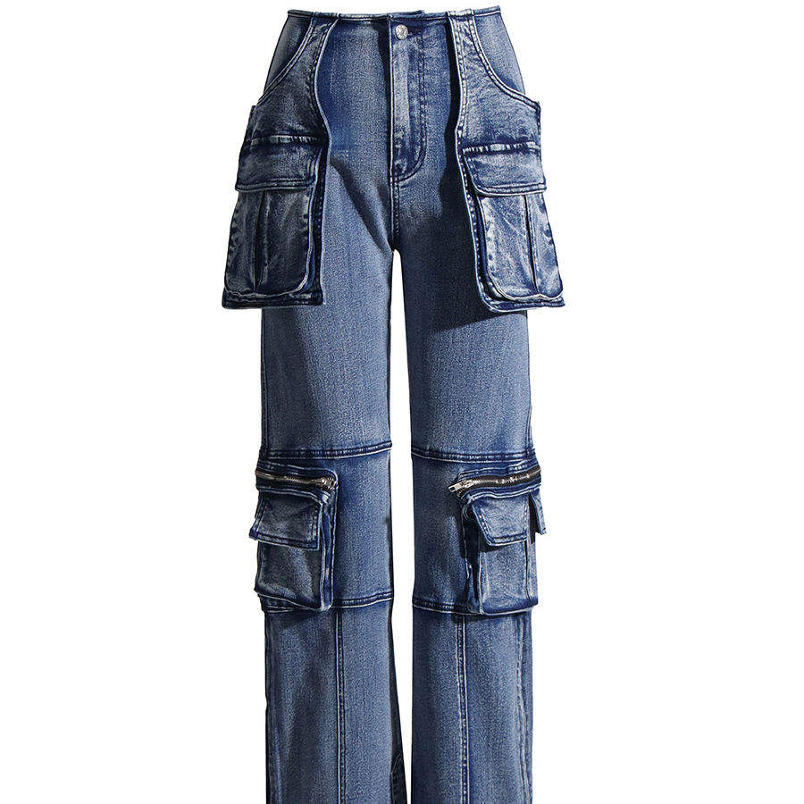 Product name:High quality women baggy trousers multi pockets faded washed denim