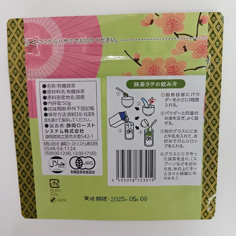 High quality Japan green tea organic luxury festive ceremonial matcha powder bag for 50g