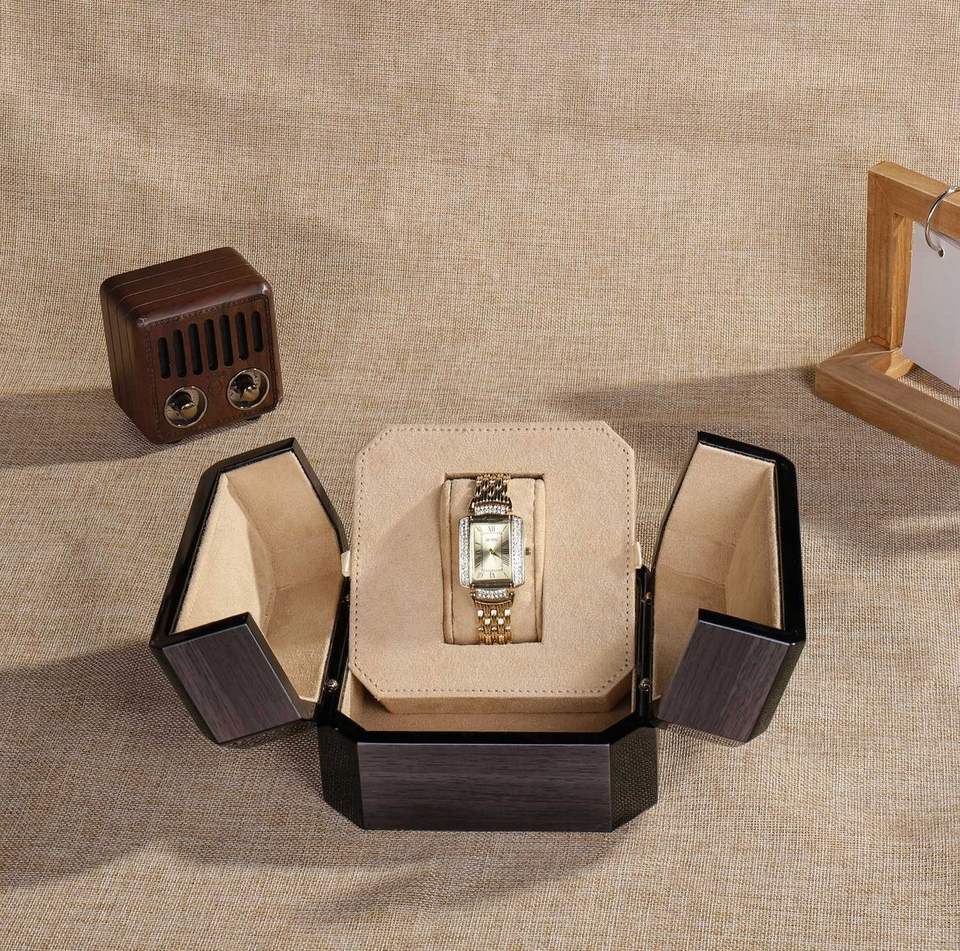 High-quality Lustrous Black PU Leather Rectangle Watch Gift Luxurious Custom Double-Door Eco-Friendly Recyclable Wooden DS Brand