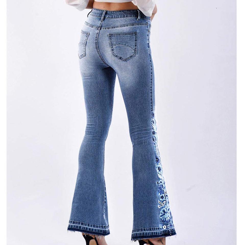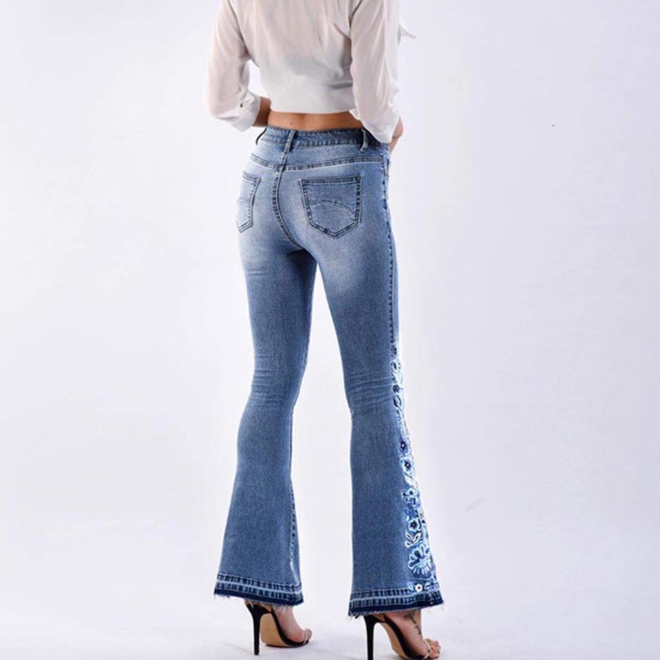 High Quality Mid Waist Lace up Denim Trousers Breathable Flare Pant Stretch Plus Size Women Clothing Bottom Flared Denim Pants