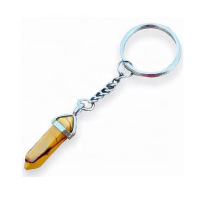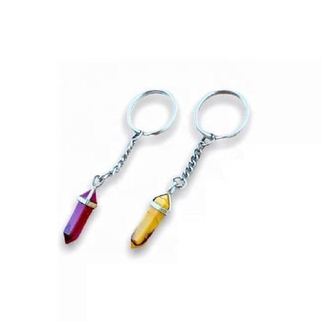 High quality Natural mookaite jasper Crystal Hexagonal Column Stone Handmade Double Point Metal Keychain Crystal Stone Wholesale