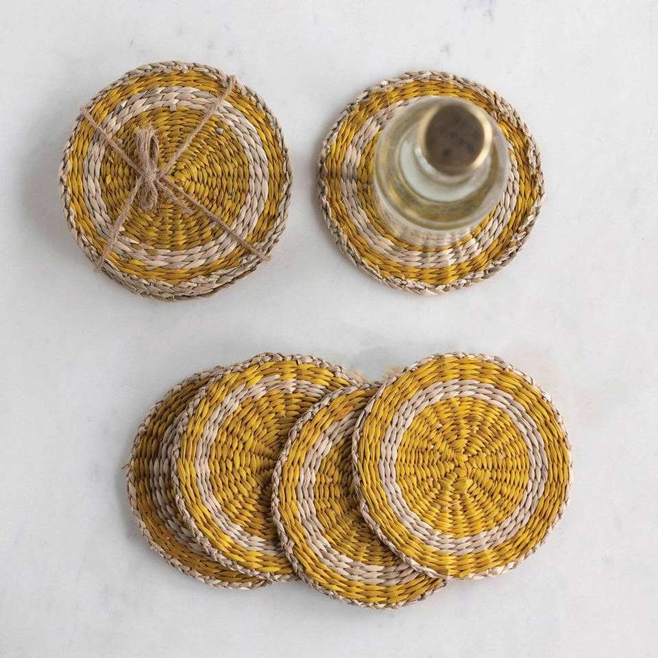 Product name:light yellow spun bamboo round coaster 10 cm set from Vietnam