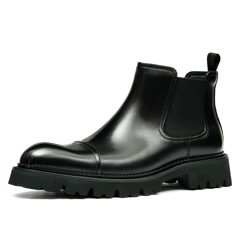 High-quality Thick-soled Lace-up Chelsea Men's Shoes Fleece Genuine Leather British Business Casual Ankle for Boots