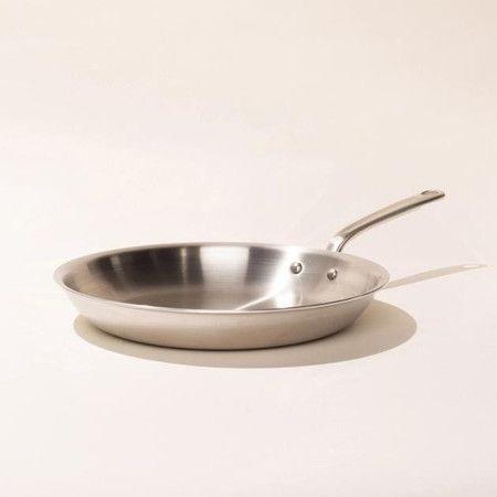 High-quality Uncoated Stainless Steel Frying Pan Commercial Household Use Single Three Layer Thickened Flat Bottom Fry Pan