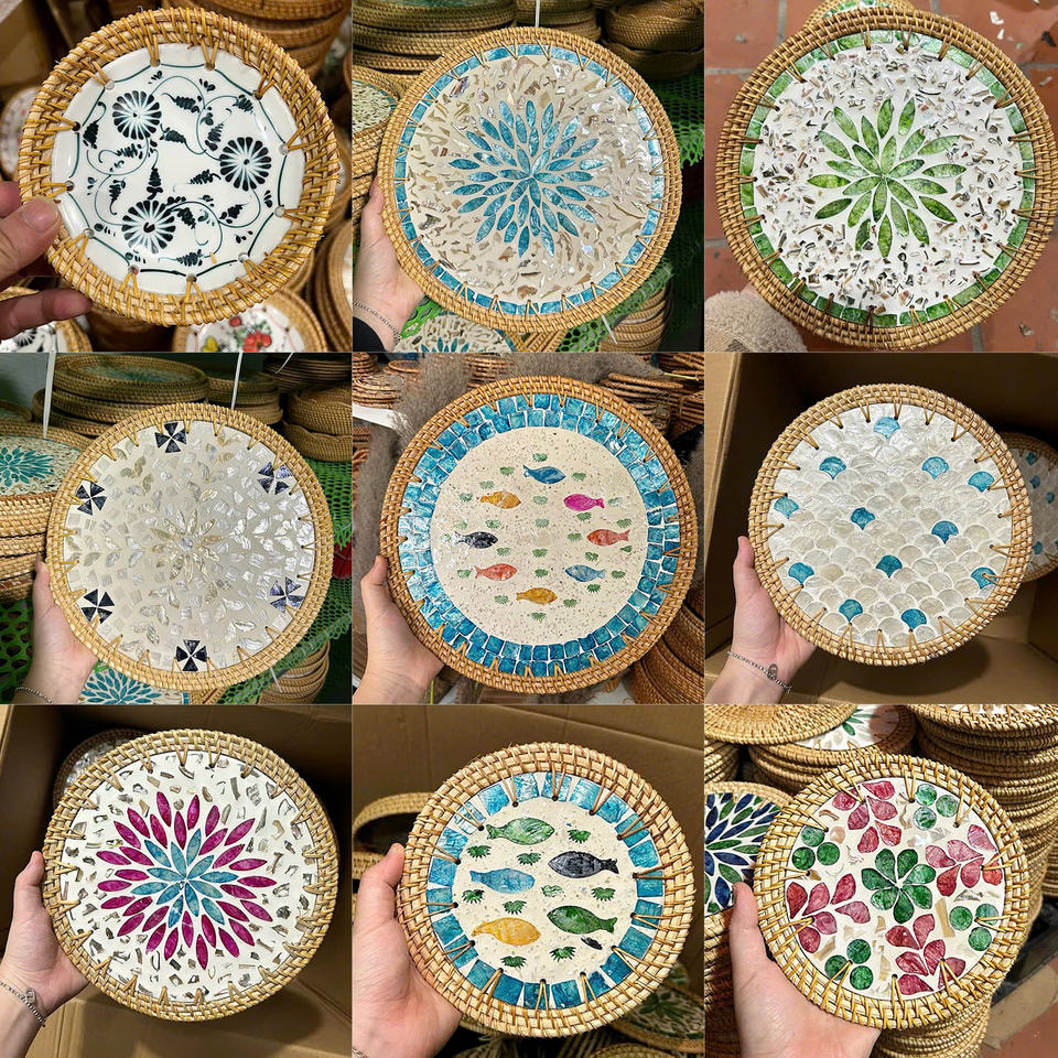 High quality Vietnam rattan mother of pearl cup mat coaster place mat for protecting marble countertops serving cold beverages