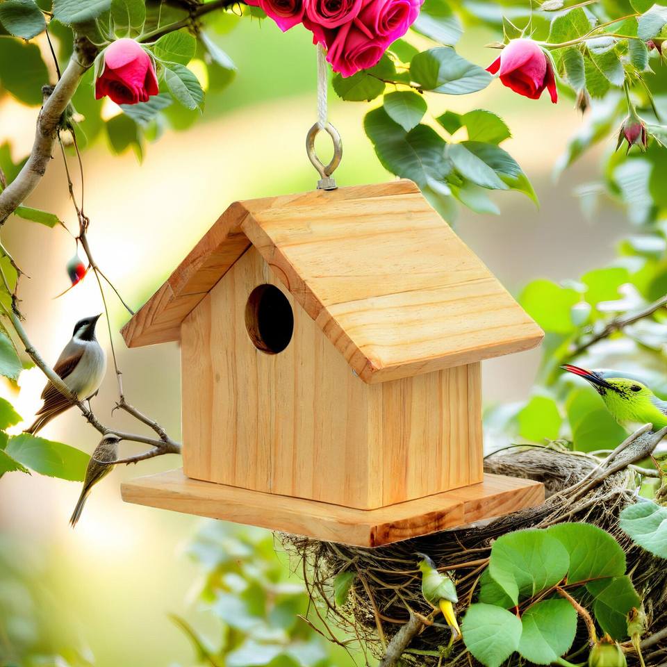 High Quality Solid Pine Wood Durable Bird House Box Hanging Outdoor for Garden Handmade