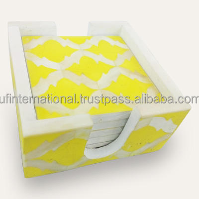 High Quality Bone Inlay coaster with Stand for Customize Size and Color for Home and Kitchen Ware Use with Hot Sale Product