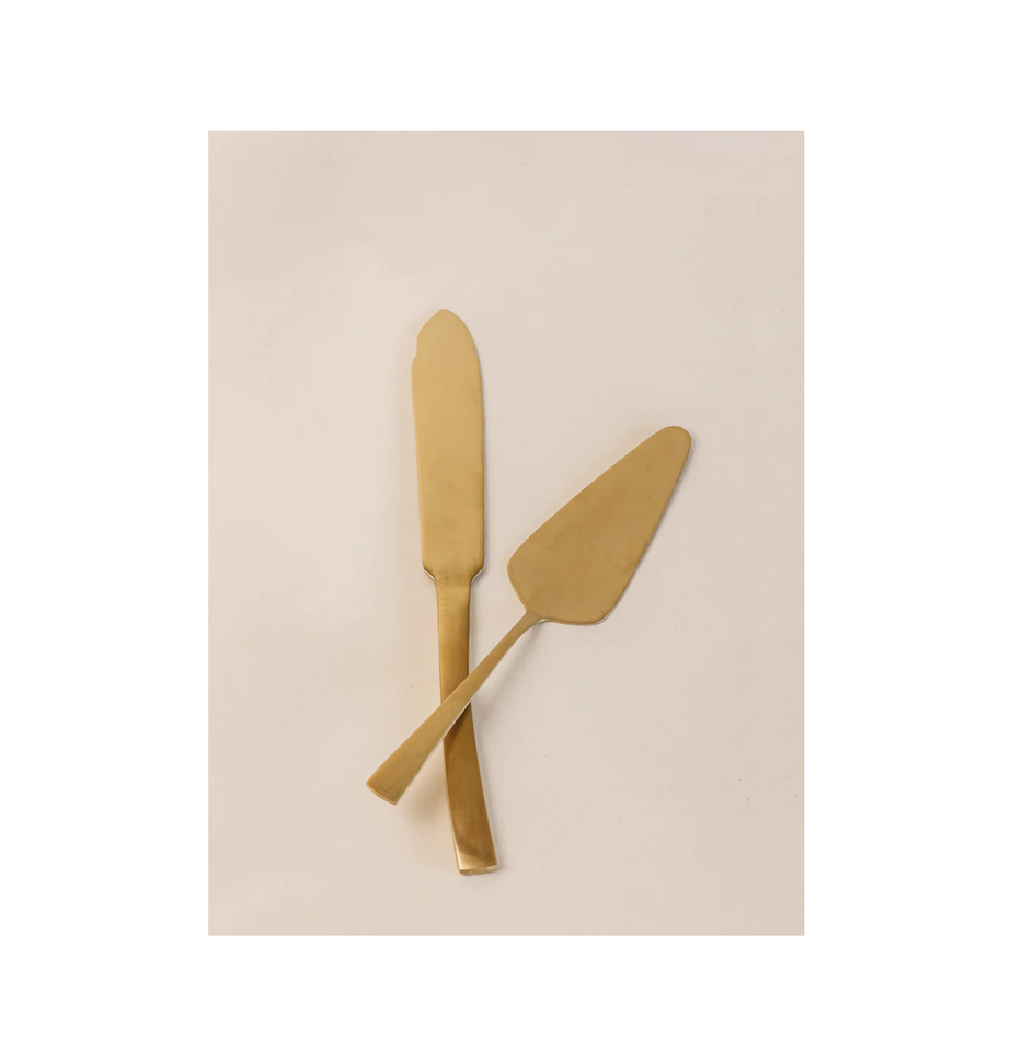 High Quality Brass Cake Knife and Salad Spoon and Fork/golden Flatware Kitchen Morden Luxury Piece Hot Sale