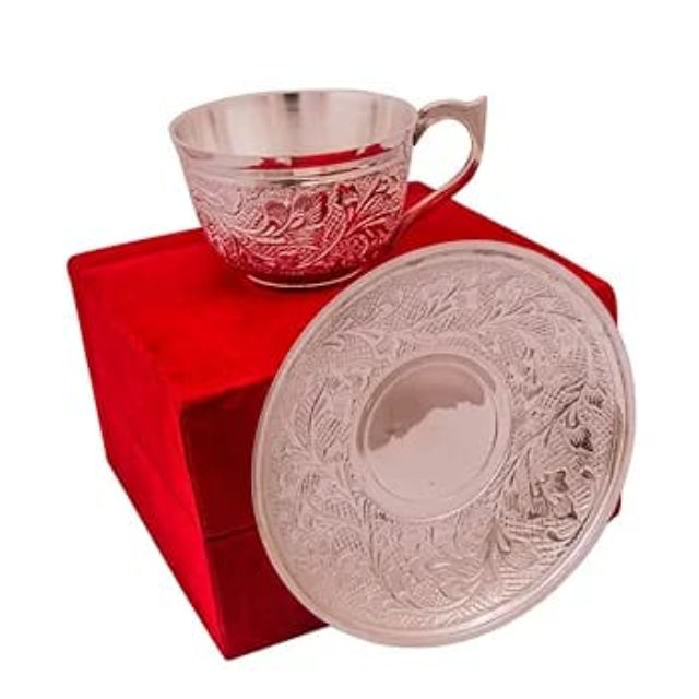 High quality brass and Silver tea cup and saucer set with traditional motifs and durable design for cultural tea events