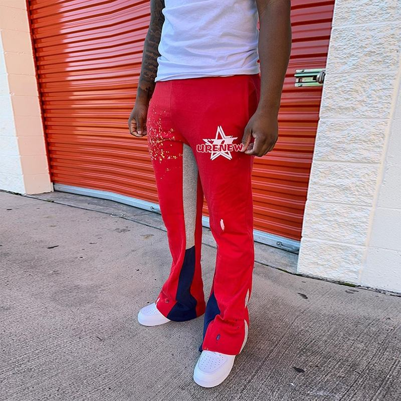 High Quality French Terry Y2k Cargo Pants Men Sweatpants Stacked Flared Joggers Custom logo Puff Printing Trousers Men