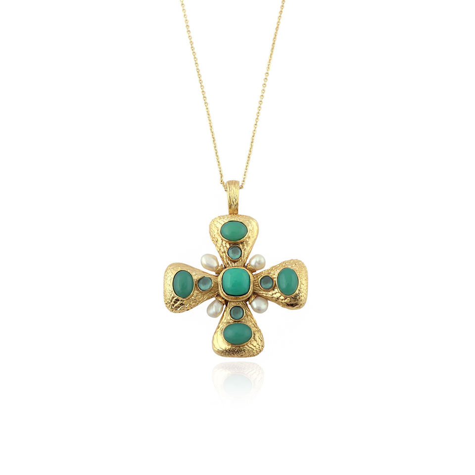 Chryso Chalcedony, Aqua CZ, PearlMain Stone