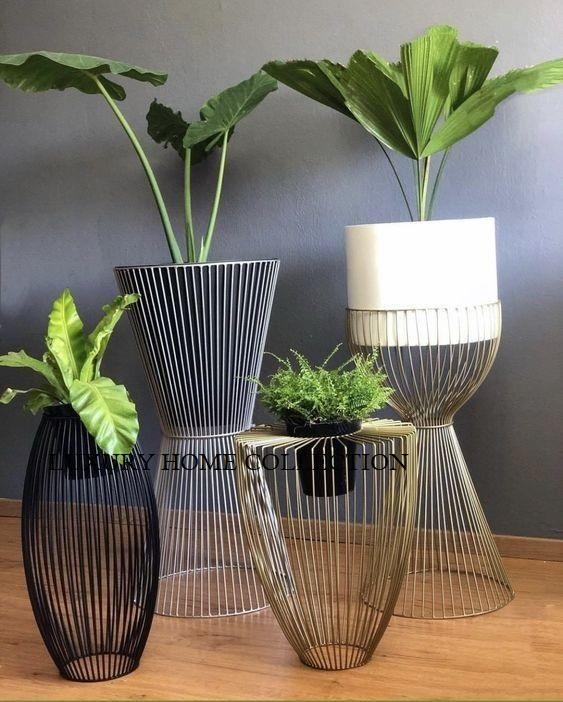 High quality handmade metal planter pot with long standing iron support for showcasing plants in hallways or open lounges