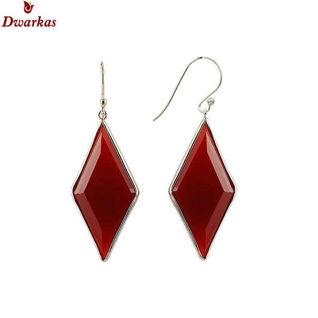 High quality hot selling best selling 925 sterling silver natural red onyx gemstone bezel set dangle earrings for women