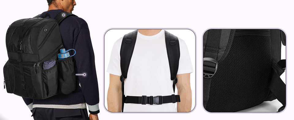 High-quality indoor causal sports bag with 2 ball bags, durable extra storage pockets, bowling ball bag