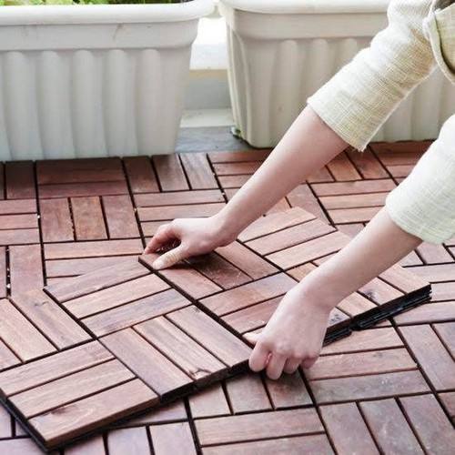 High Quality 12-Slat DIY Wooden Deck Floor Tiles Exterior for Garden Terrace Parquet Flooring