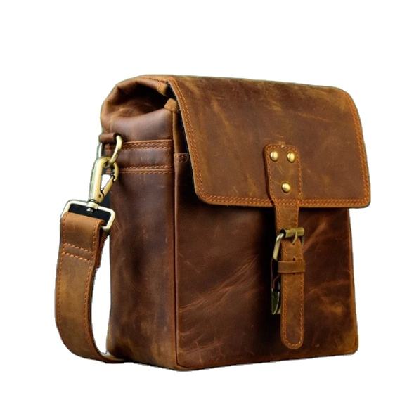 Durable Zipper Closure High Quality Genuine Leather Camera Bag Secure Storage Foldable Design for Easy Packing India Supplier