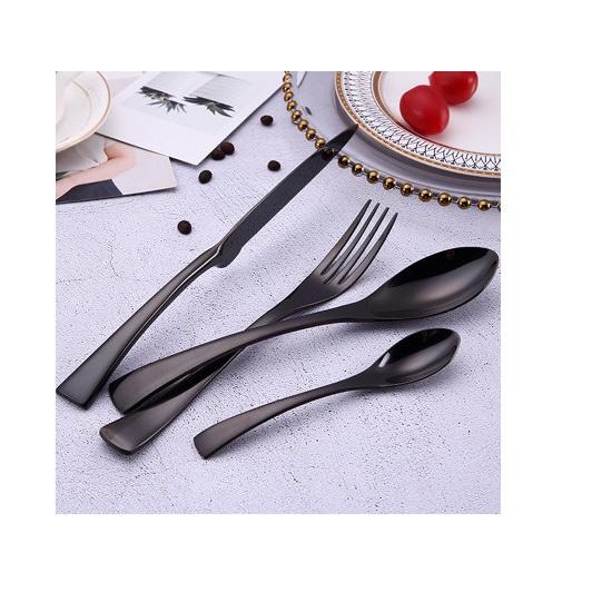 High quality matte black cutlery set stainless steel hotel modern flatware black silverware spoons forks and knives set